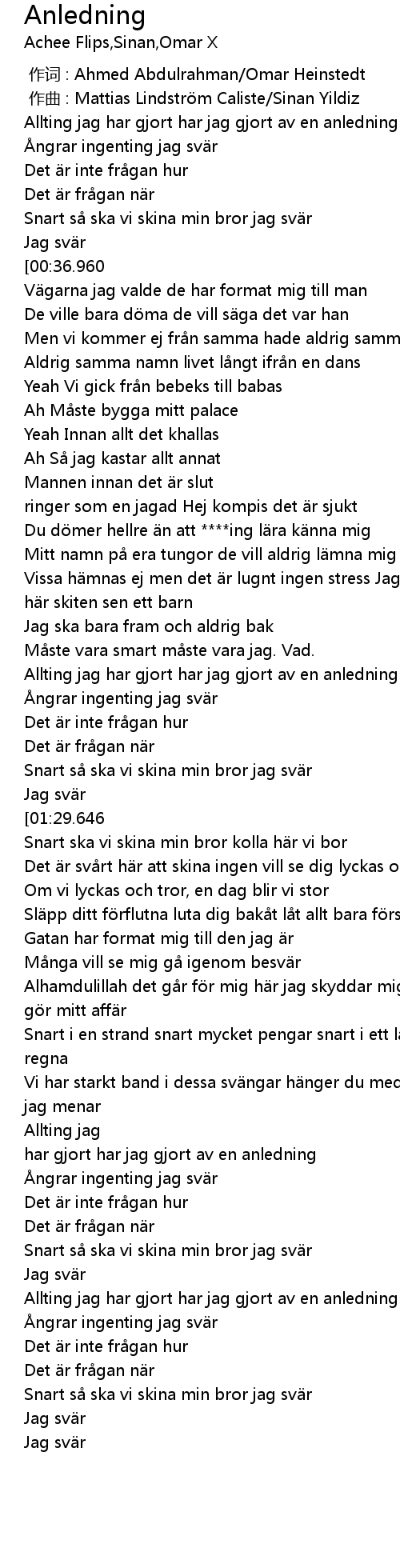 | [00:40.682] | Men vi kommer ej från samma hade aldrig samma chans |
