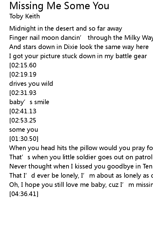 | [04:10.74] | Oh, I hope you still love me baby, cuz I’m missing me some you |