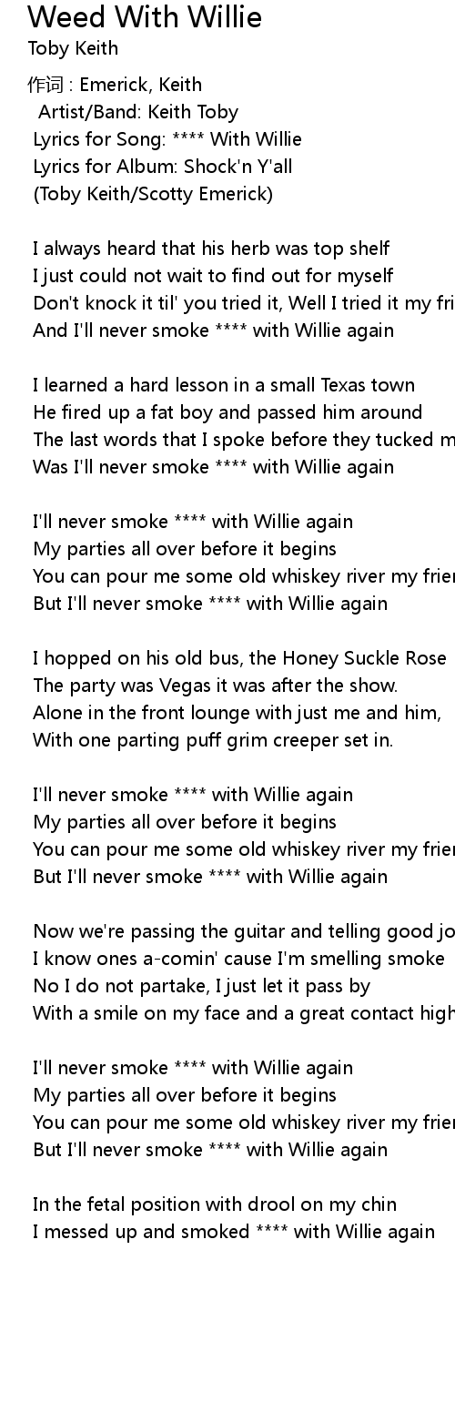 | Lyrics for Song: **** With Willie | |