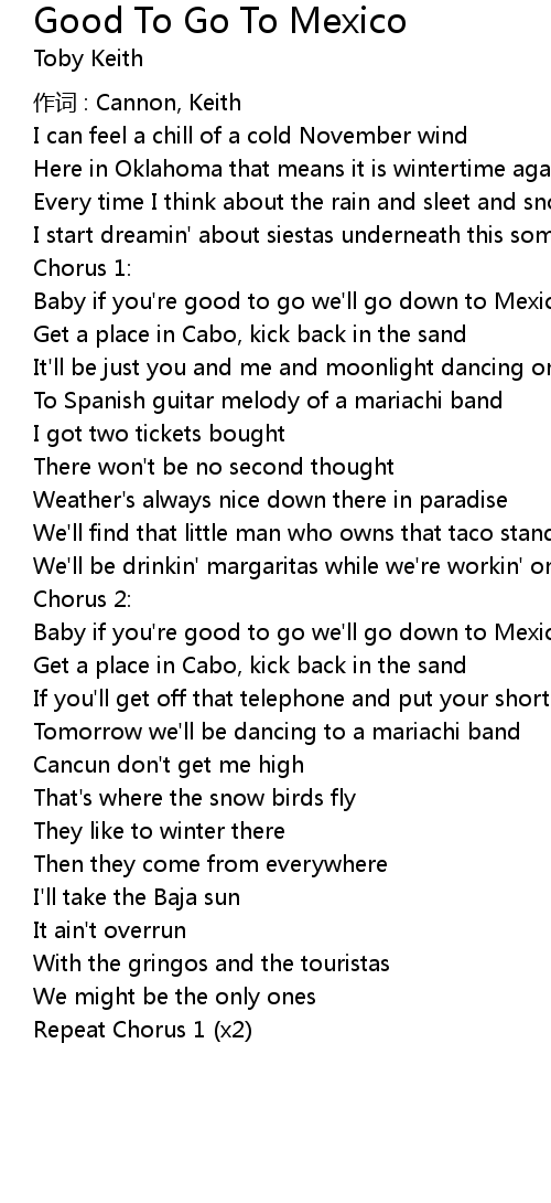 | Baby if you' re good to go we' ll go down to Mexico | |