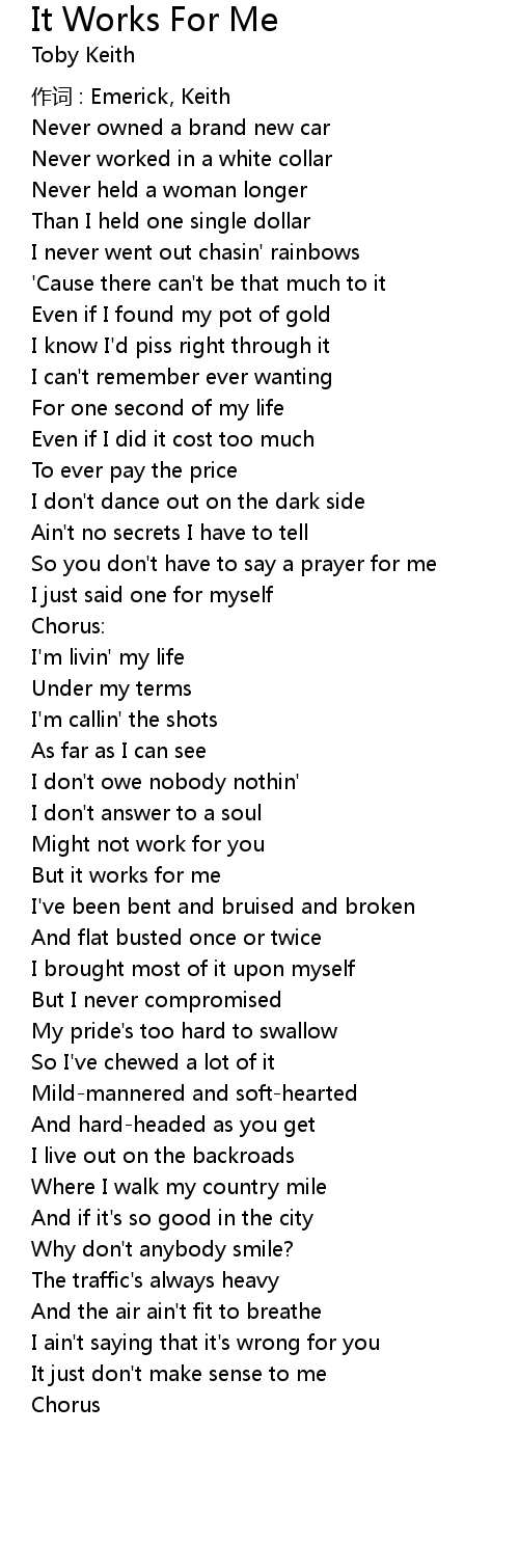 | Song | It Works For Me |