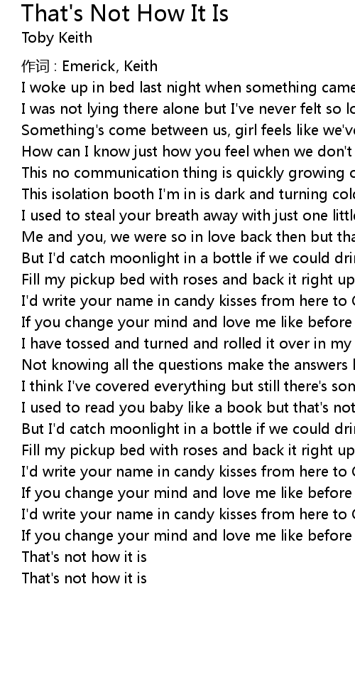 | Something' s come between us, girl feels like we' ve hit a wall | |