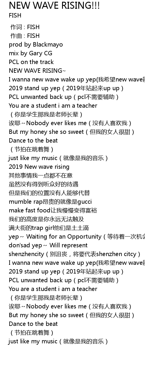 | [00:23.117] | I wanna new wave wake up yep(我希望new wave能走起) |
