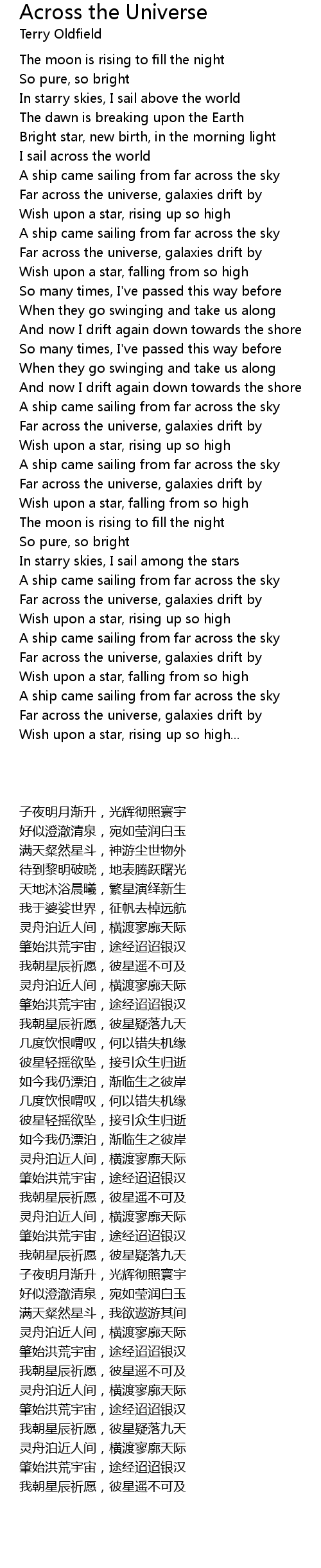 In starry skies, I sail among the stars |