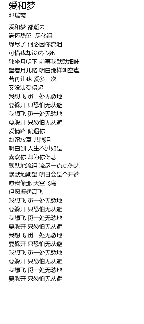 | [02:33.790] | 我想飞 觅一处无愁地 |