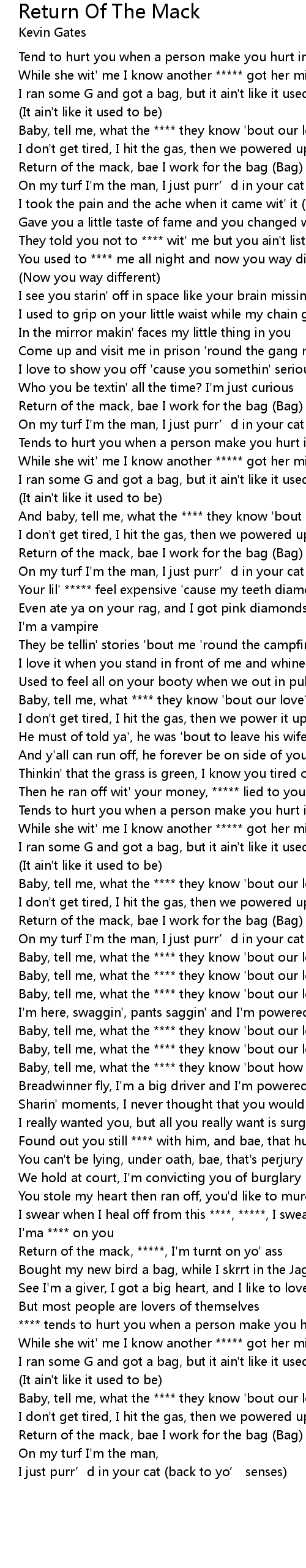 | [03:15.81] | Return of the mack, *****, I'm turnt on yo' ass |