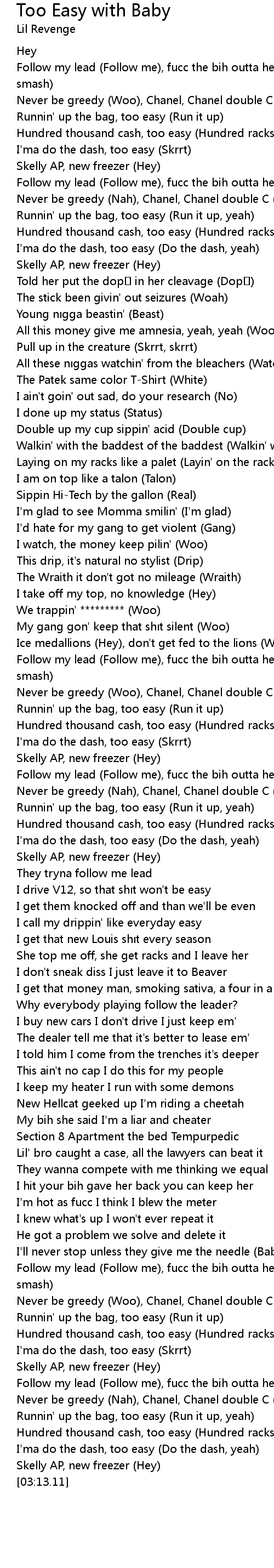 | [02:49.71] | Runnin' up the bag, too easy Run it up |