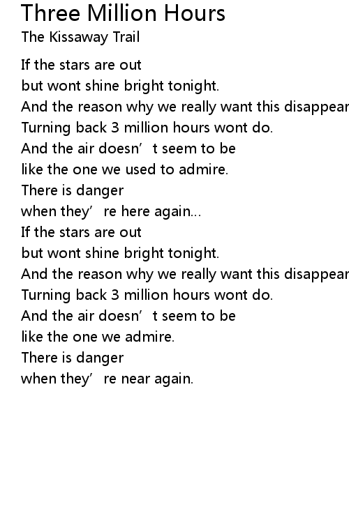 | Song | Three Million Hours |