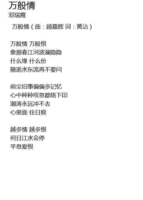 | 万般情(曲:顾嘉辉 词:黄沾) | |