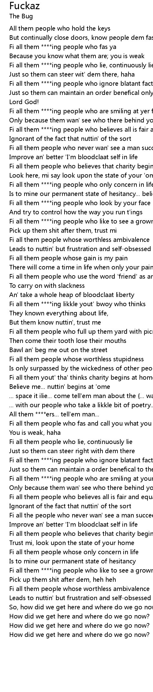 Fi all them ****ing likkle yout' bwoy who thinks |