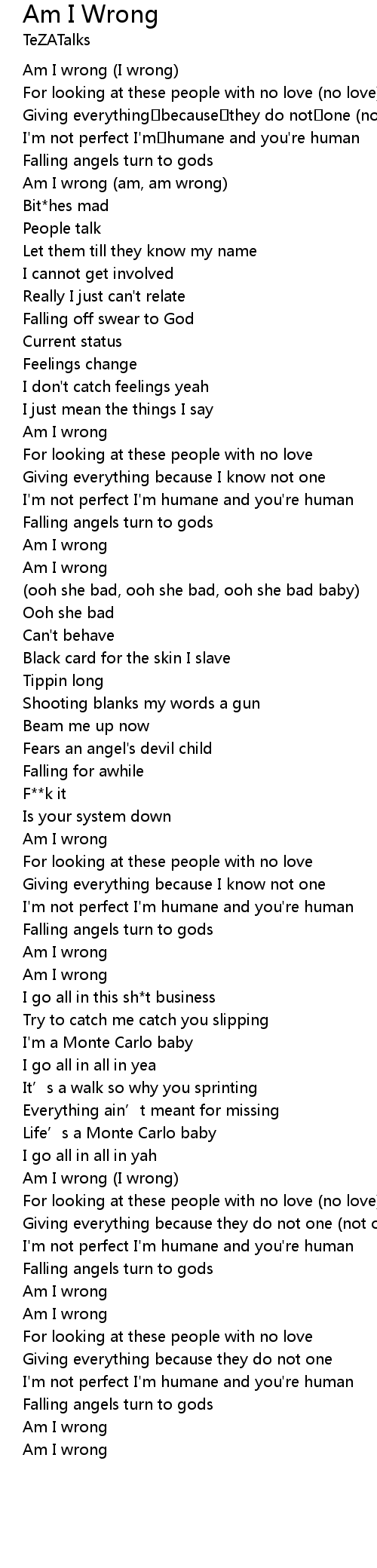 | [00:16.078] | Am I wrong (I wrong) |