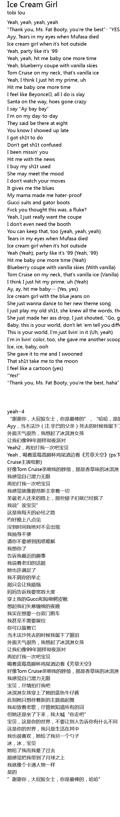 | [01:30.520] | Tom Cruise on my neck, that's vanilla ice (Vanilla) |