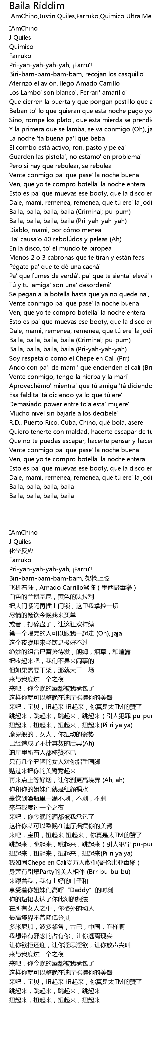 | [02:11.96] | R. D., Puerto Rico, Cuba, Chino, que bola, asere |