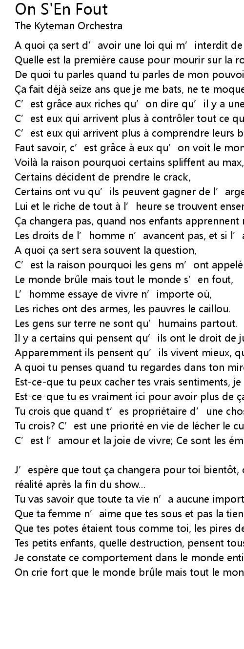| On crie fort que le monde br le mais tout le monde s' en fout... |