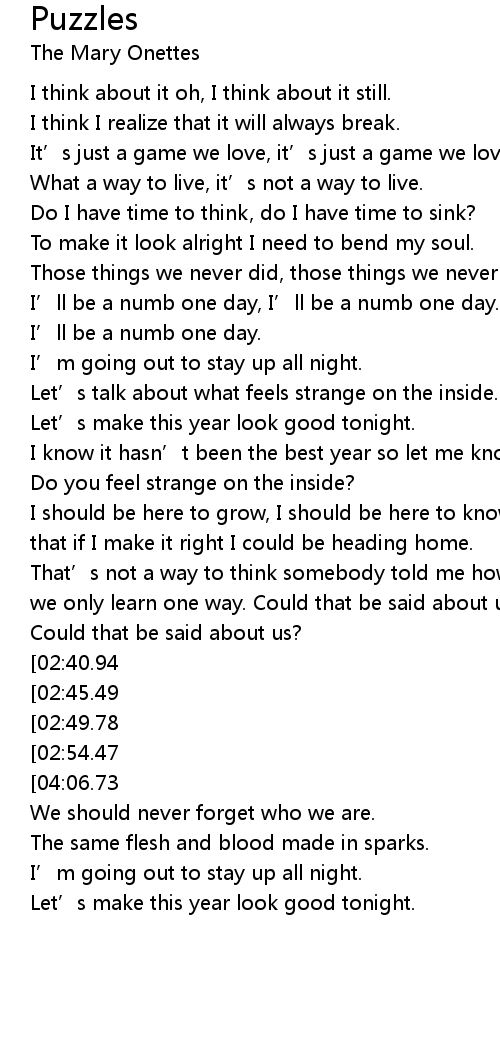 | Song | Puzzles |