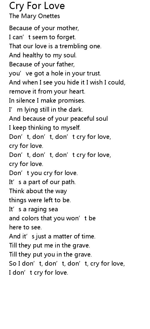 | Don’t, don’t, don’t cry for love, | |