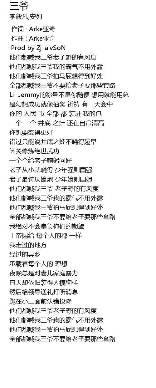 | [00:19.297] | 他们都喊我三爷我的霸气不用外露 |