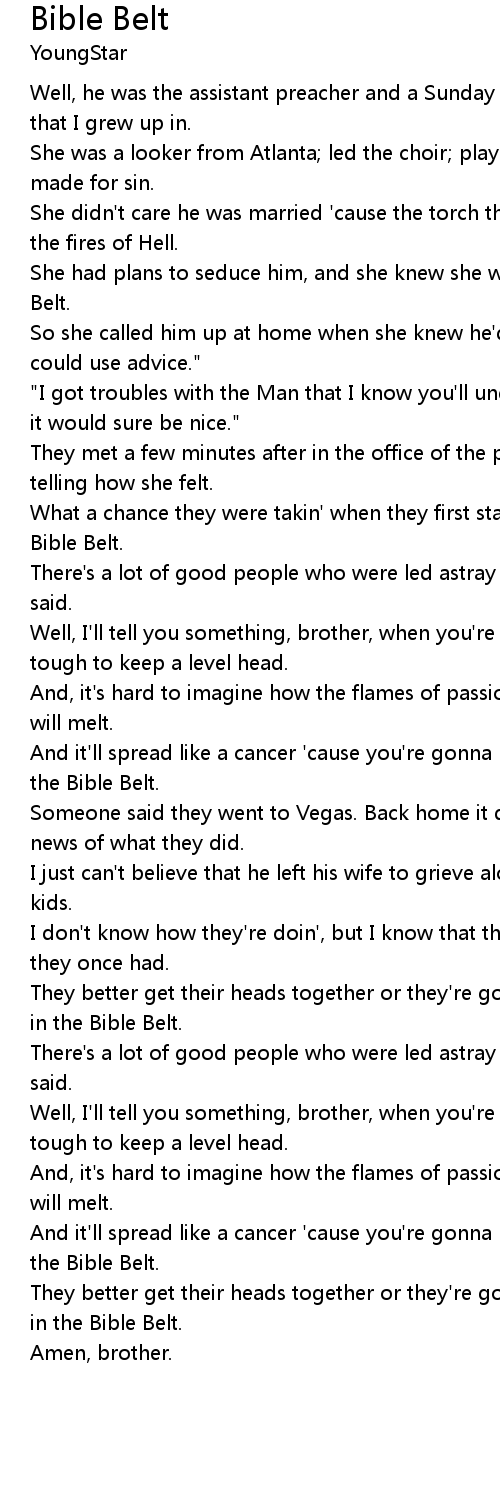 And it'll spread like a cancer 'cause you're gonna have to answer to the Lord in the Bible Belt. |