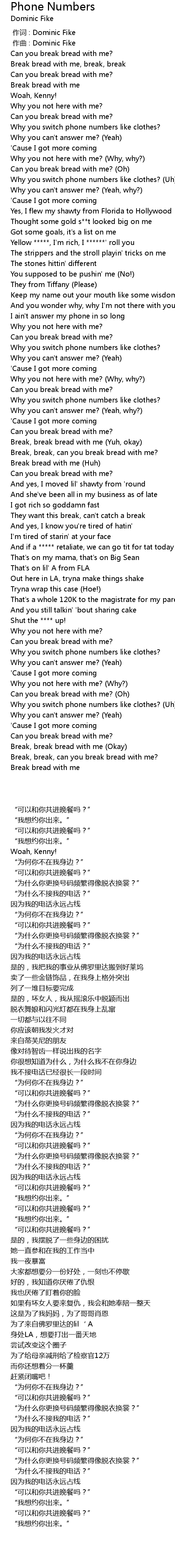 | [00:25.93] | Why you switch phone numbers like clothes? (Uh) |