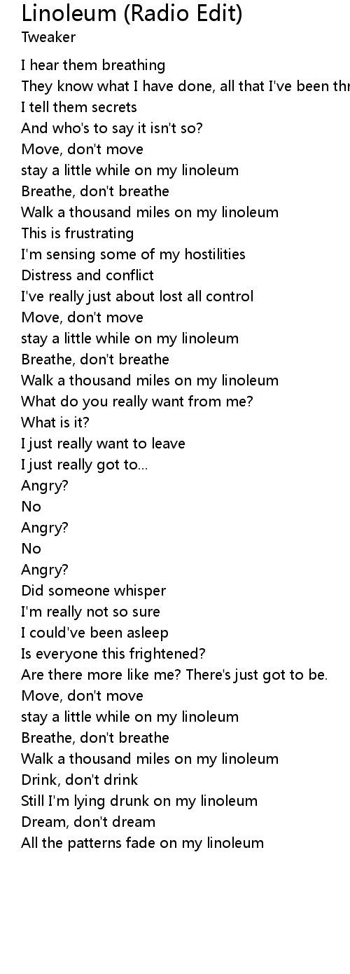 stay a little while on my linoleum |