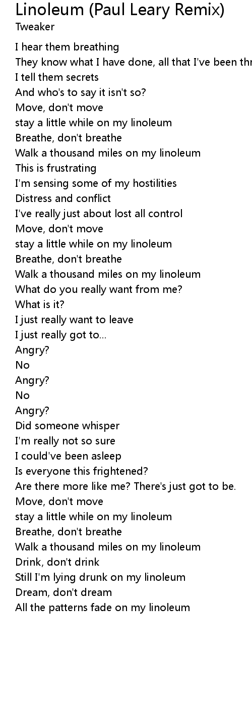 stay a little while on my linoleum |