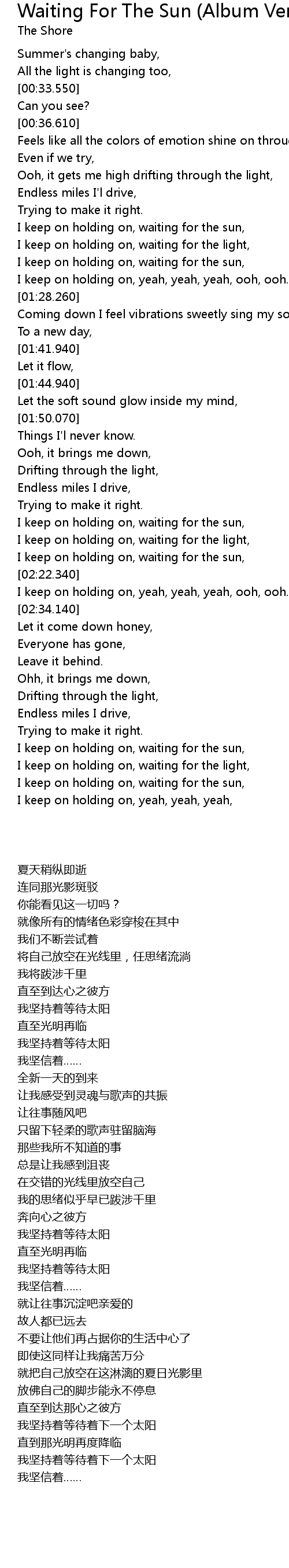 | [03:04.630] | I keep on holding on, waiting for the sun, |