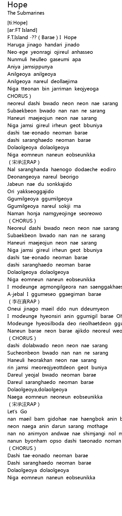| [00:03.176] | F.T.Island -??(Barae)I Hope |
