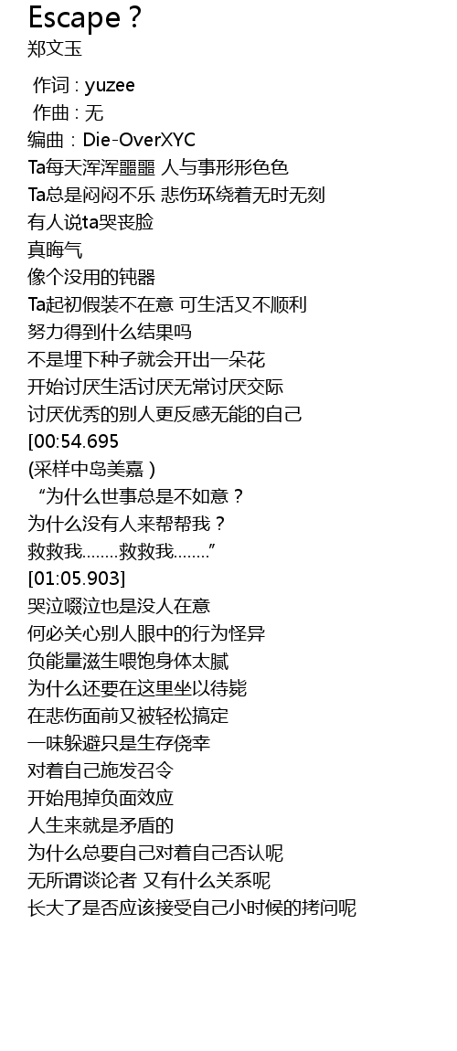 | [00:13.704] | 编曲:Die-OverXYC |