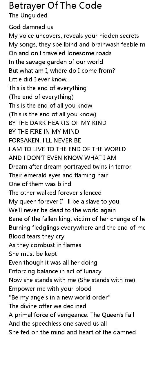 | Song | Betrayer Of The Code |