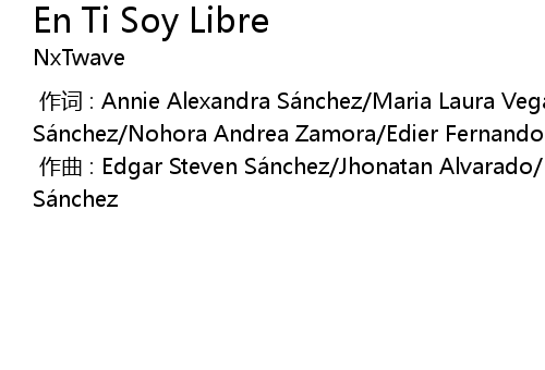 | [00:00.00-1] | 作词 : Annie Alexandra Sánchez/Maria Laura Vega/Edgar Steven Sánchez/Nohora Andrea Zamora/Edier Fernando Sánchez |