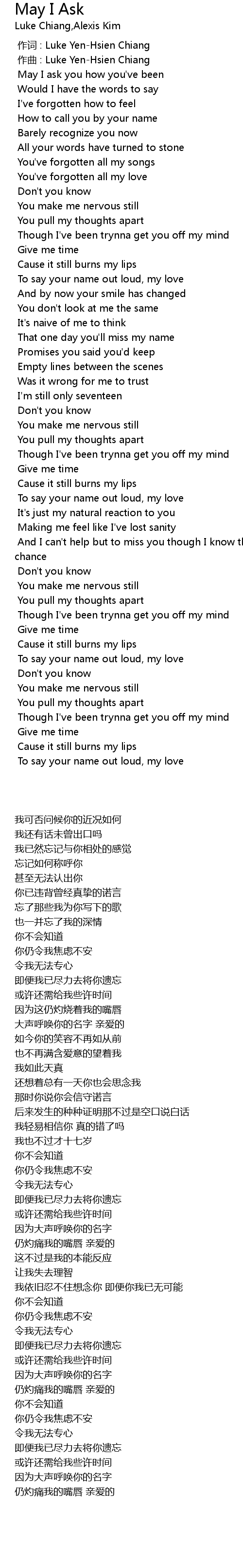 | Song | May I Ask |