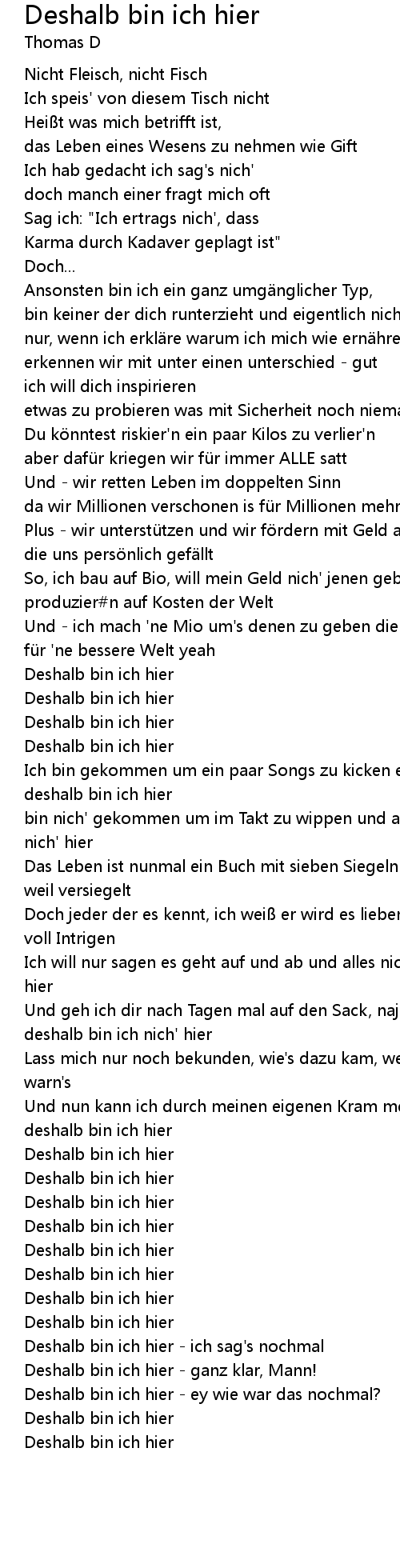 | Deshalb bin ich hier ich sag' s nochmal | |