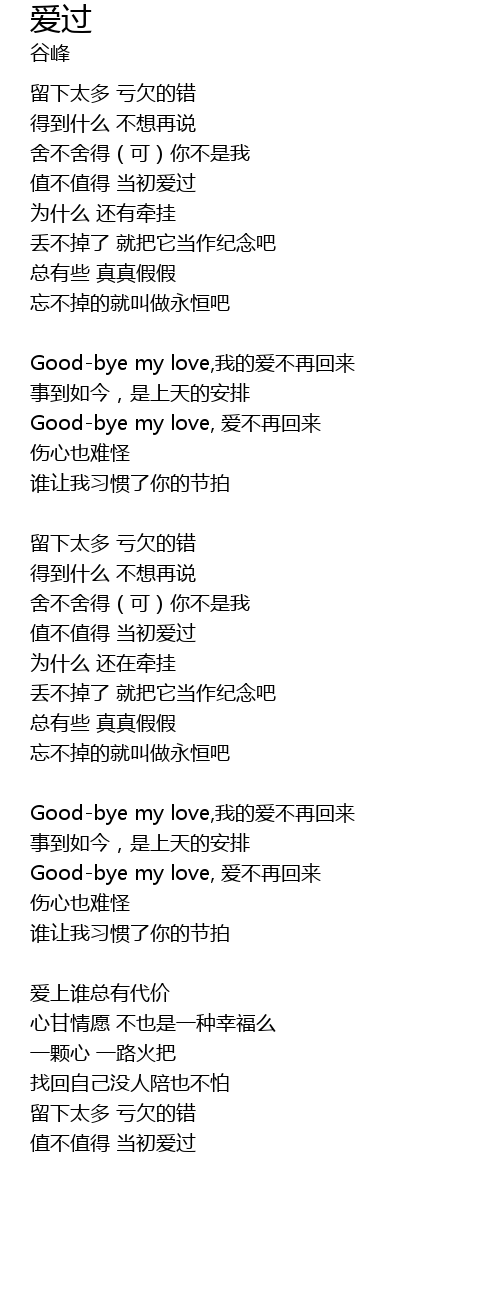 | Goodbye my love, wǒ de ài bù zài huí lái | |