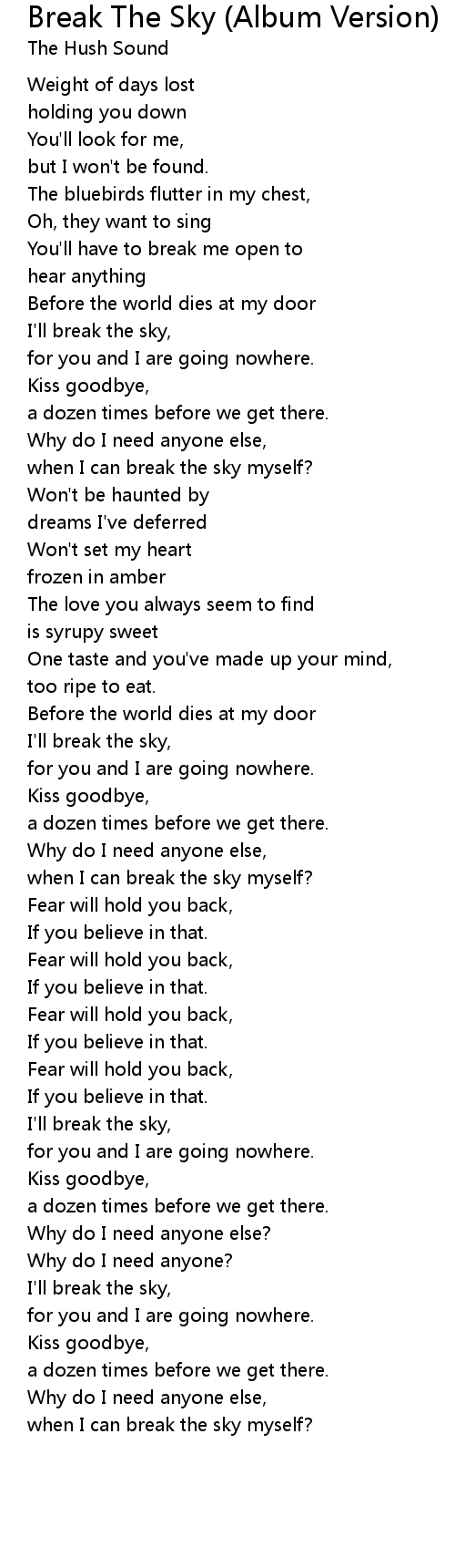 I'll break the sky, |