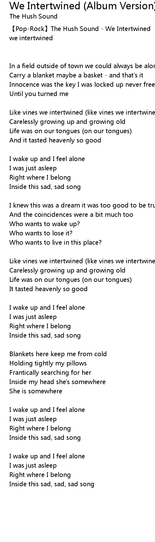 | [01:13.58] | Like vines we intertwined (like vines we intertwined) |