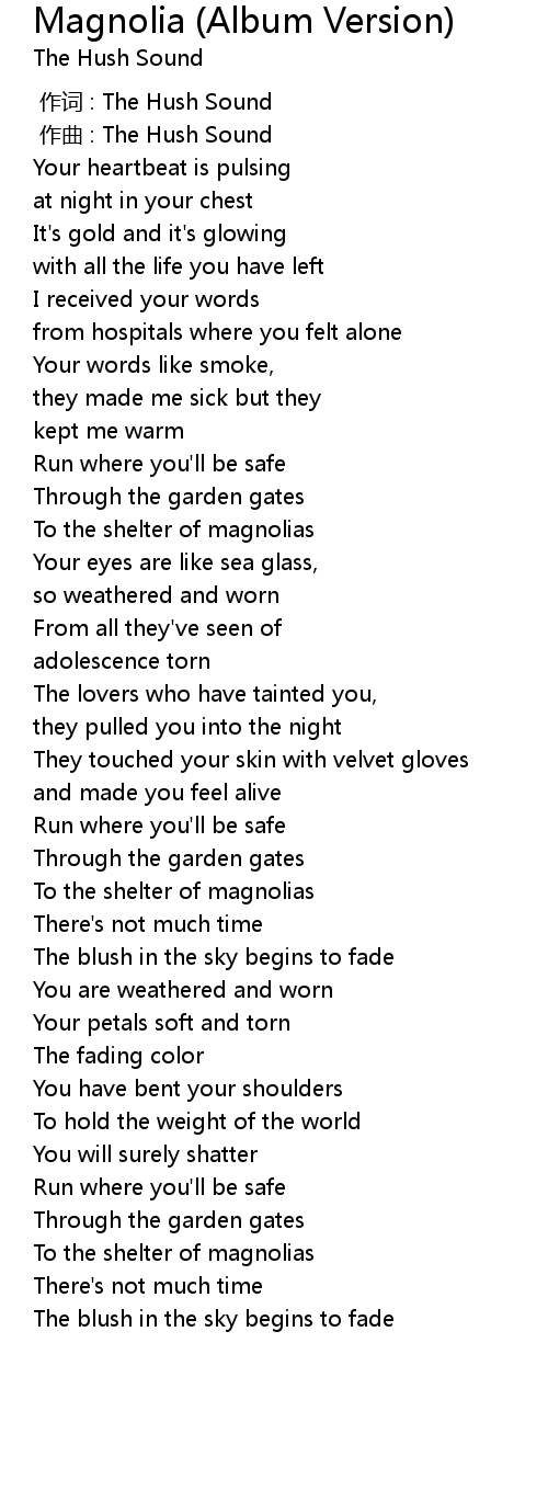 | [00:00.548] | zuò qǔ : The Hush Sound |