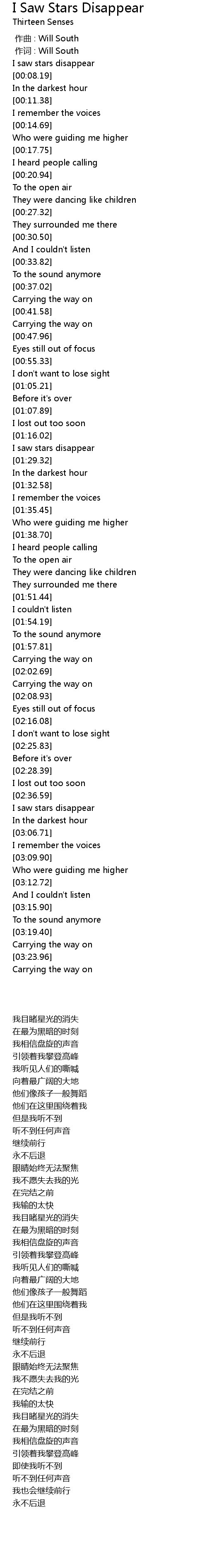 | [03:01.15] | I saw stars disappear |