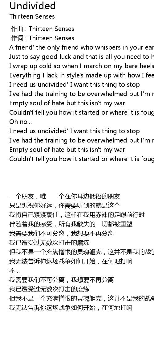 | [00:00.530] | 作词 : Thirteen Senses |