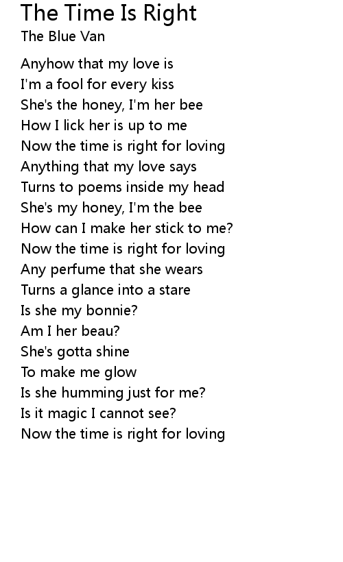 | Now the time is right for loving | |