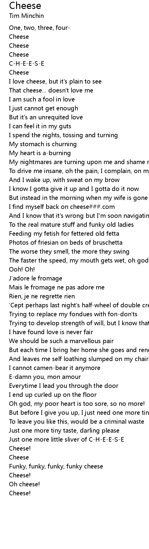 Funky, funky, funky, funky cheese |