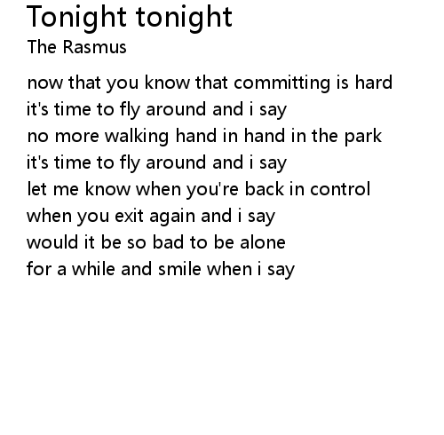 | Song | Tonight tonight |