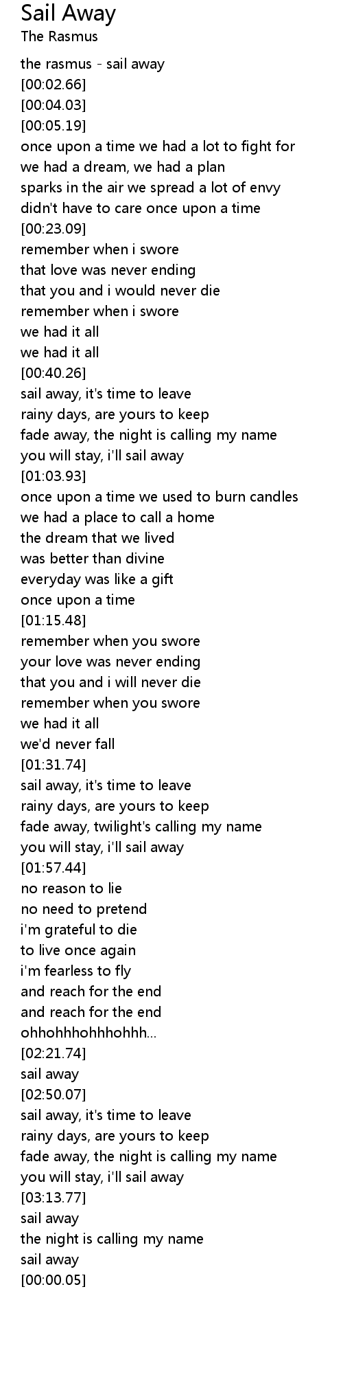 the rasmus - sail away |