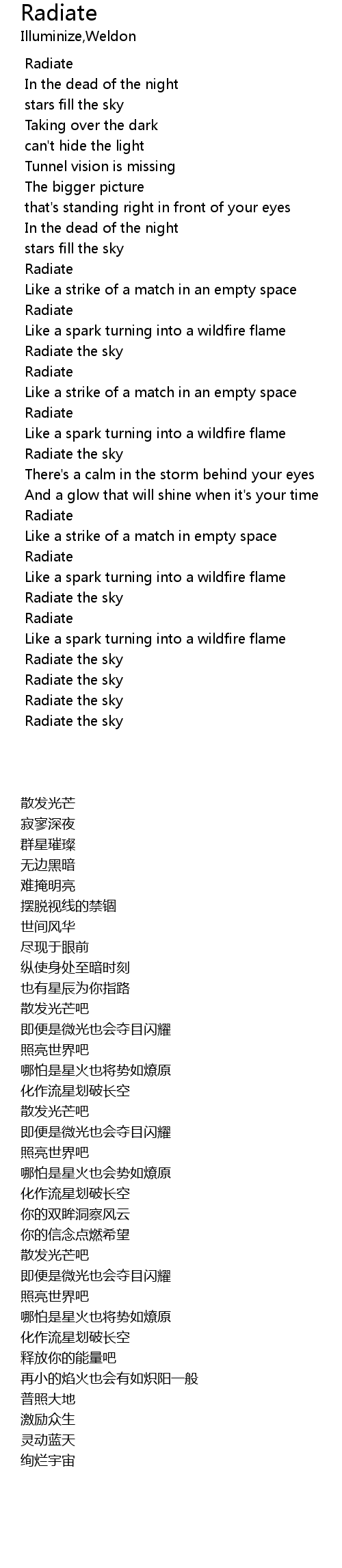 | [00:39.100] | Radiate |