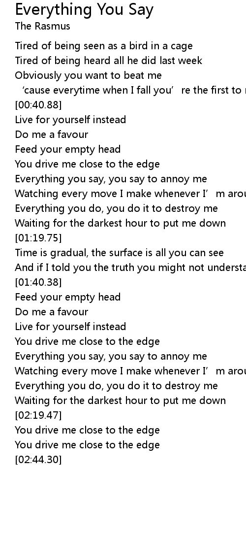 | [01:08.67] | Everything you do, you do it to destroy me |