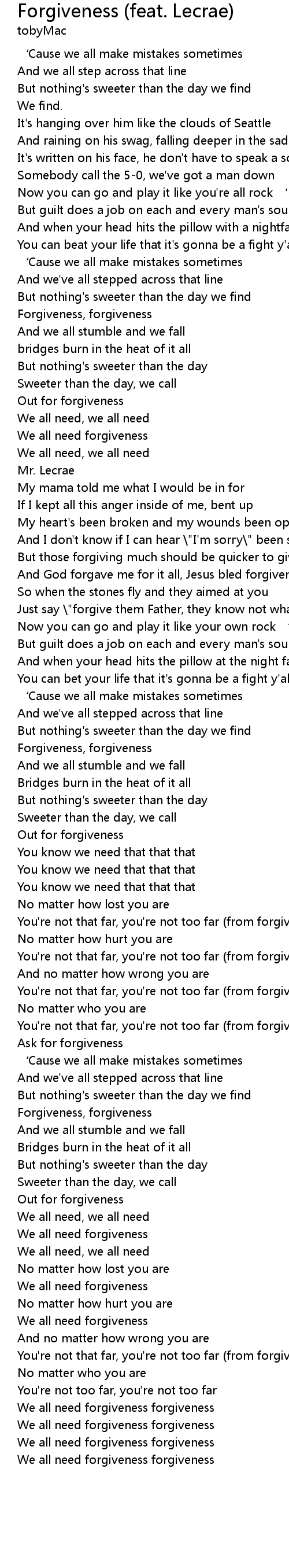| We all need forgiveness forgiveness |