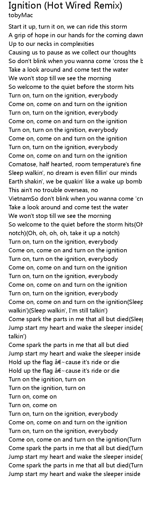 | Come on, come on and turn on the ignition(Turn on the ignition) | |