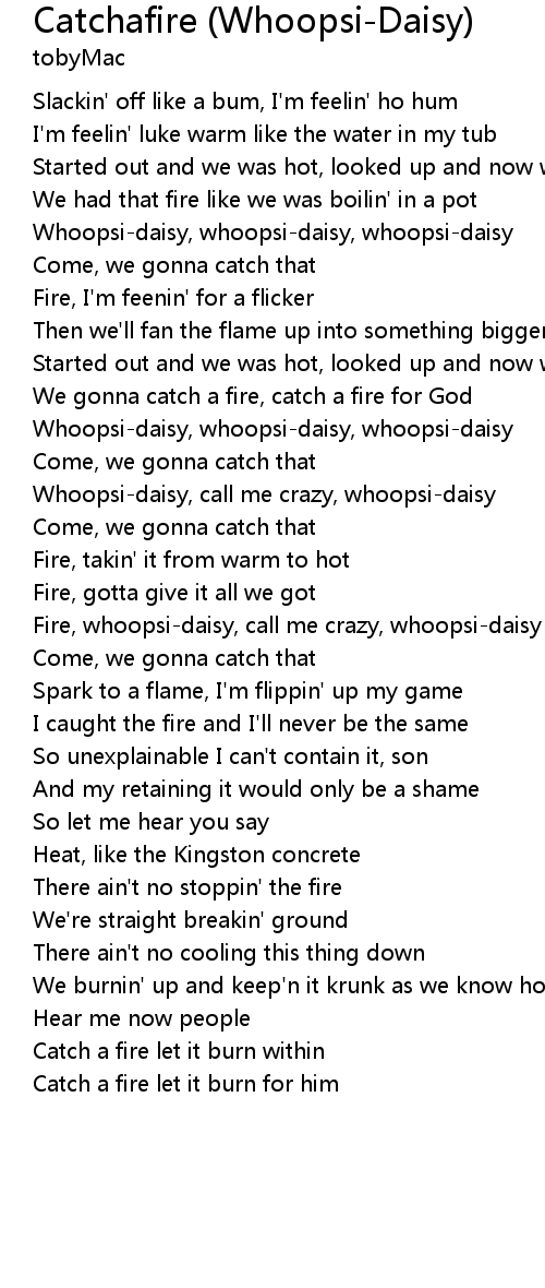 Fire, whoopsi-daisy, call me crazy, whoopsi-daisy |