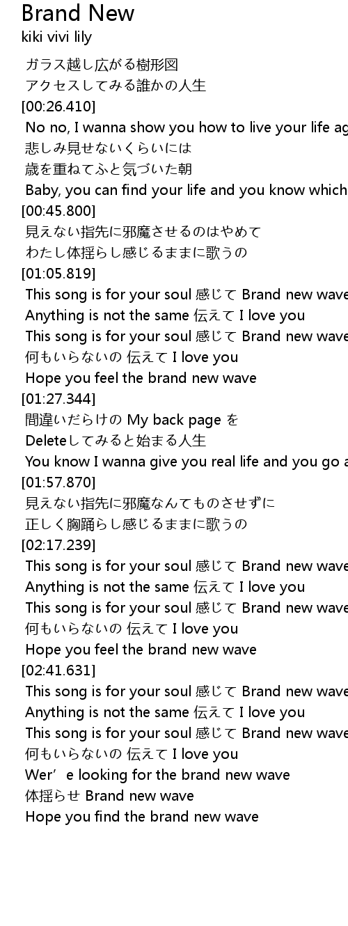 | [02:26.603] | This song is for your soul 感じて Brand new waves |