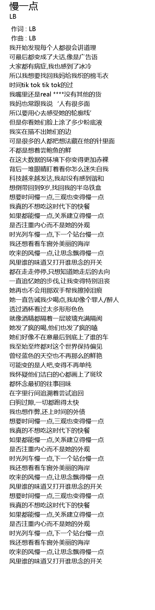 | [00:00.000] | 作词 : LB |