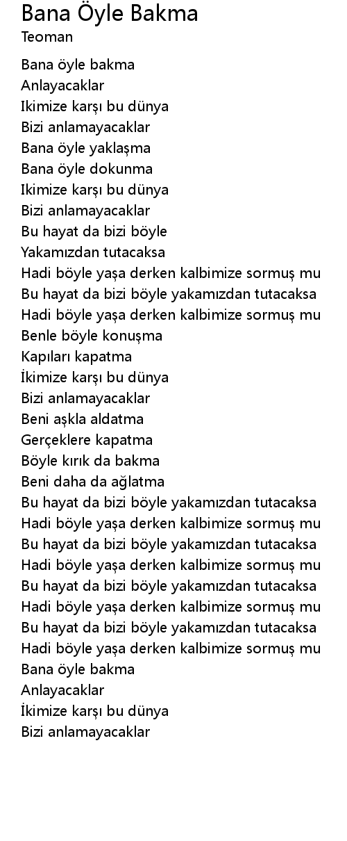 | [00:01.82] | Bana yle bakma |